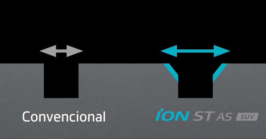Gracias a la tecnología iON innovative technology, la iON ST AS SUV ha superado los límites para cerrar la brecha entre el rendimiento de agarre y el ruido/desgaste de la banda de rodadura.