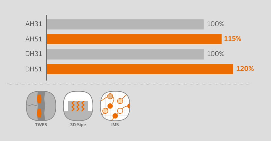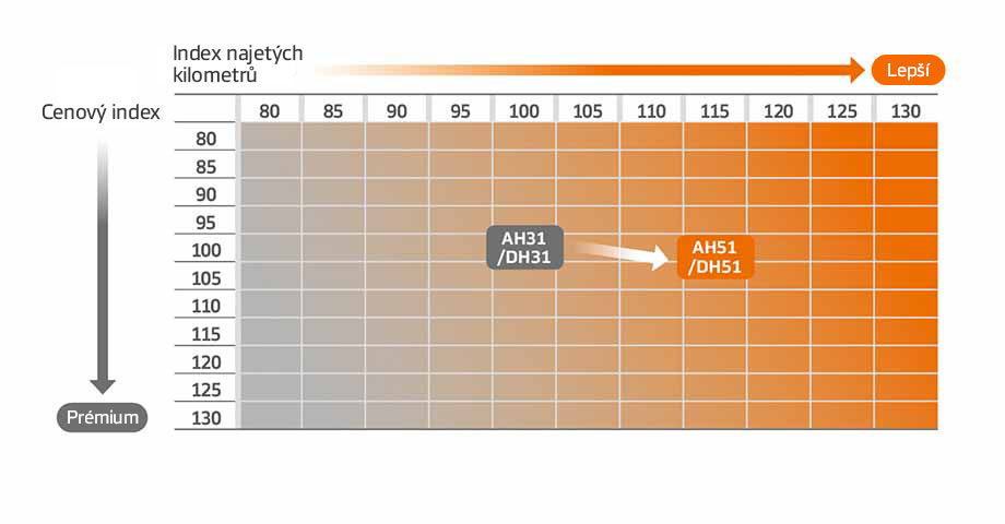 Přináší prémiový výkon za všech podmínek během celé životnosti pneumatiky