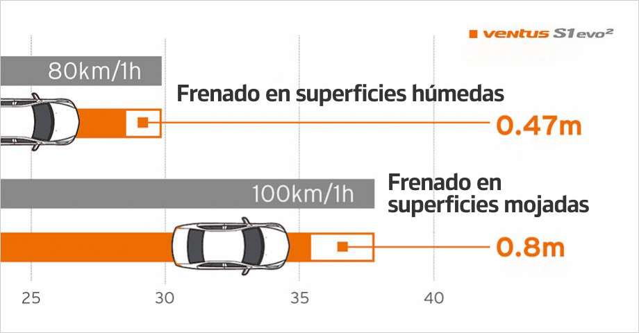 Extremada corta distancia en el frenado en superficies secas y mojadas por el óptimizado balance en la rígidez de los bloques de la banda de rodamiento.