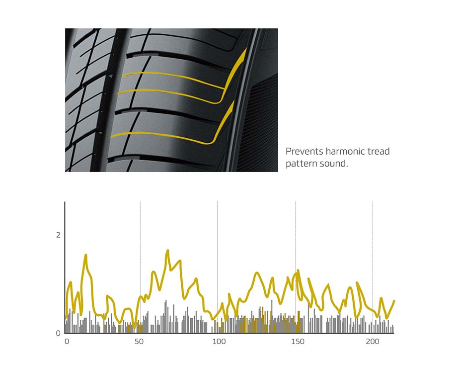 Slanted sipes improve wet condition handling and provide extra durability, while the lateral grooves prevent hydroplaning.