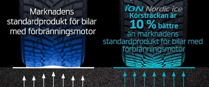 I ett certifierat vägprov presterade iON Nordic ice 12 % bättre än konkurrenten för bilar med förbränningsmotor