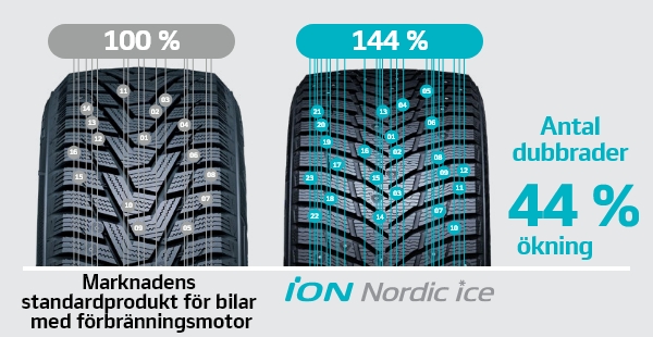 Dubbla fördelariON Nordic ice är skräddarsytt för elbilar och gör tuffa avvägningar för att uppnå optimal prestanda. .jpg)  iON Nordic ice är skräddarsytt för elbilar och gör tuffa avvägningar för att uppnå optimal prestanda.
